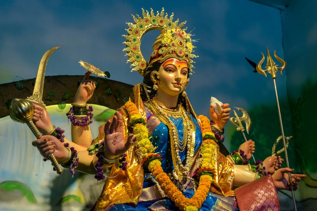 Die Göttin Parvati formte Ganesha aus Lehm und erweckte ihn zum Leben, um ihre Tür zu bewachen, während sie badete. Als ihr Ehemann Shiva nach Hause kam, kannte Ganesha ihn nicht und verweigerte ihm den Zutritt. In einem Wutanfall schlug Shiva dem Jungen den Kopf ab.